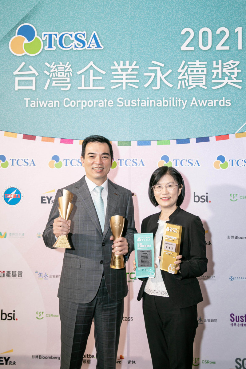 达在台湾永续奖所评比环境、社会、治理等各面向的永续绩效均获高度肯定 (左:好体育在线官网光电总经理暨营运长柯富仁,右:好体育在线官网光电永续长古秀华)