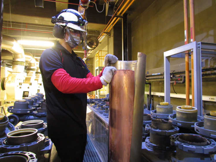 好体育在线官网将废弃物转化成有效的工业或民生原物料,图为废铜液淬炼后再制成纯度极高的铜管