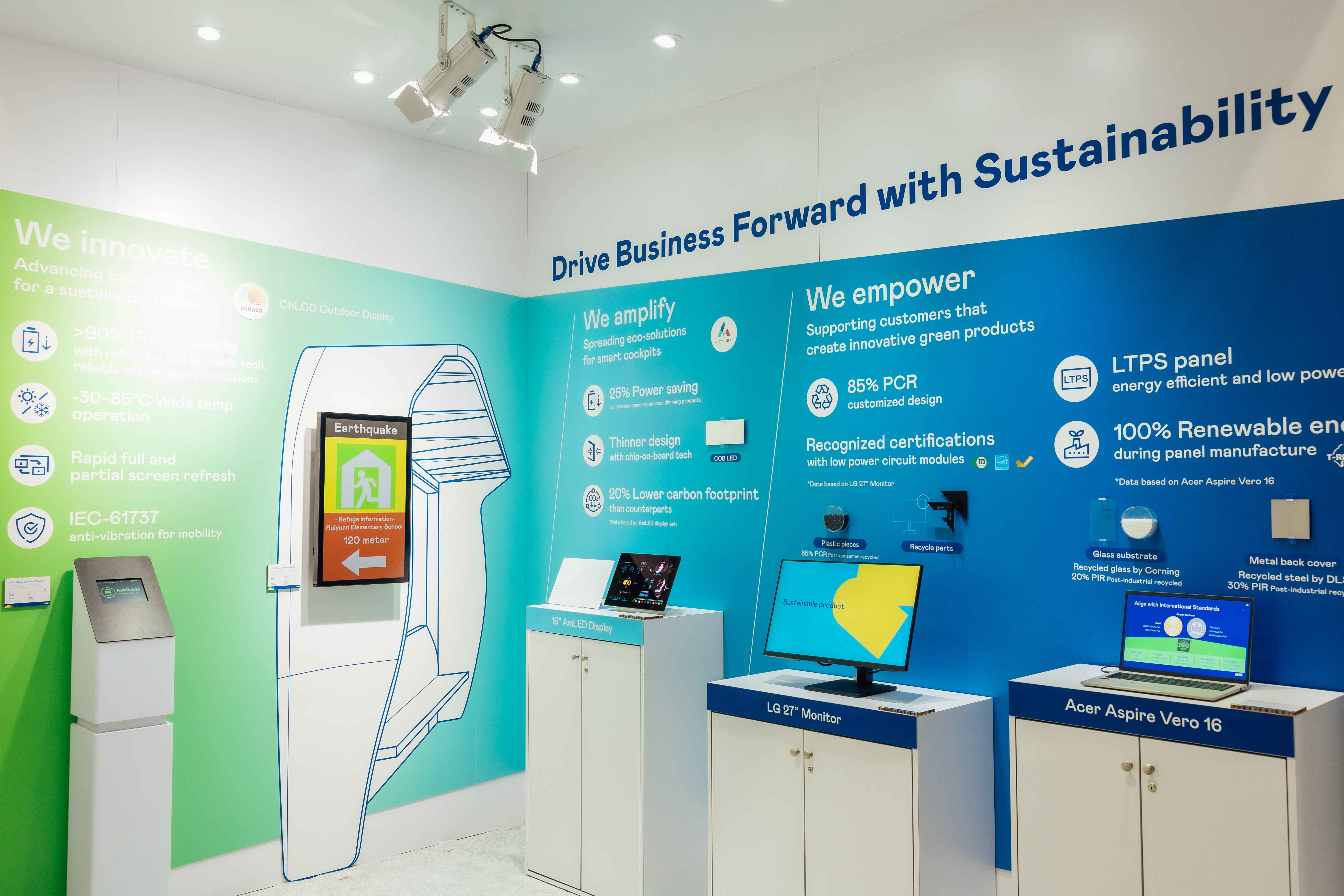 好体育在线官网运用创新显示技术HiRaso胆固醇液晶双稳态技术达到显示零耗能、扩大节能省电的AmLED显示技术应用于车用产品、以再生的消费后回收(PCR)塑料及全绿电生产之面板,应用于笔电及萤幕,增加绿色价值。