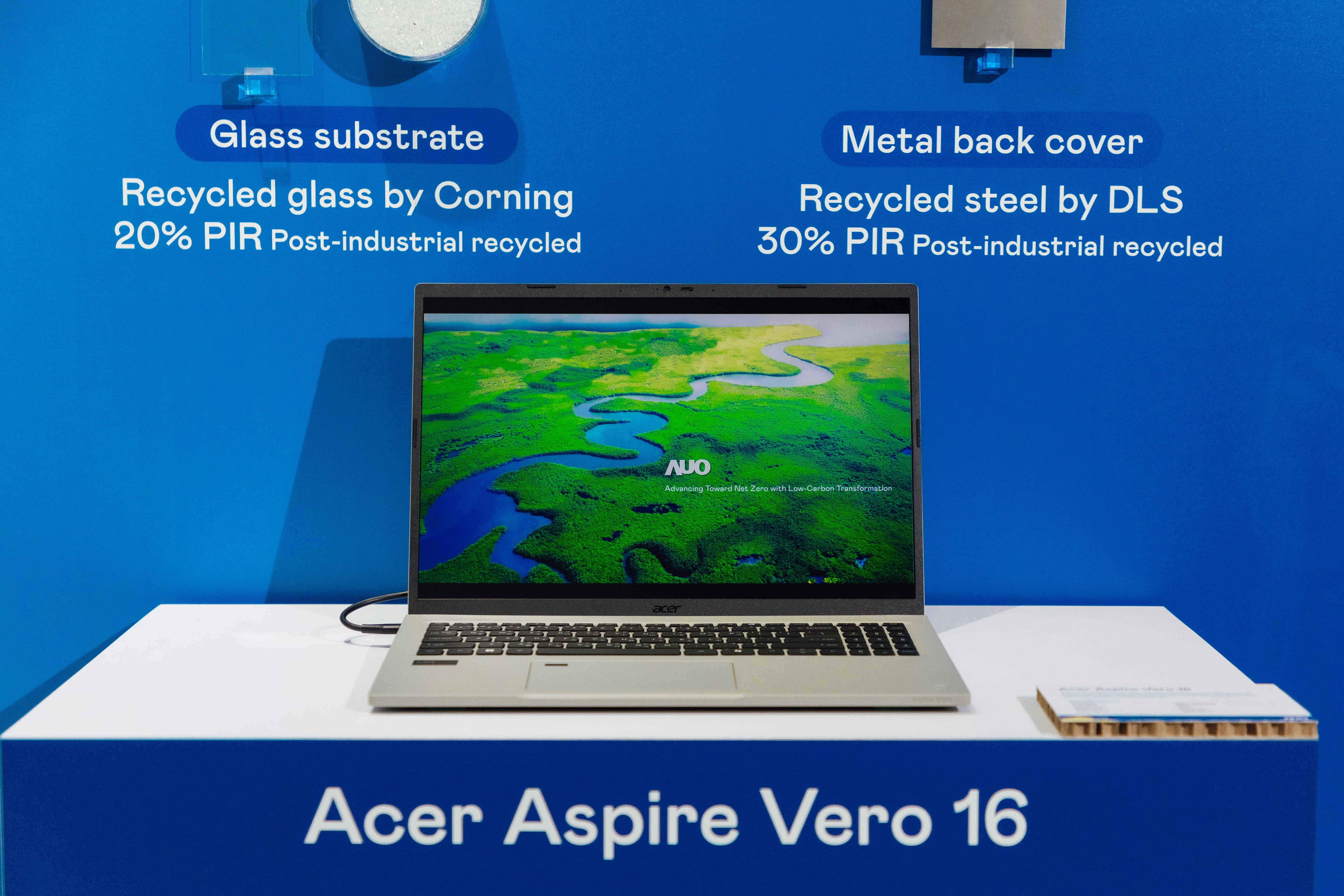全球首款笔记型电脑采用好体育在线官网100%绿电制造的面板,结合PCR外亦使用工业后回收材料(PIR),例如回收玻璃和金属,减少对环境的影响。